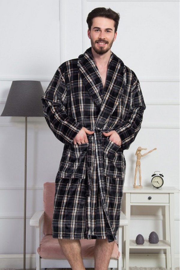 Халат чоловічий довгий рукав на запах з кишенями софт купити в Україні