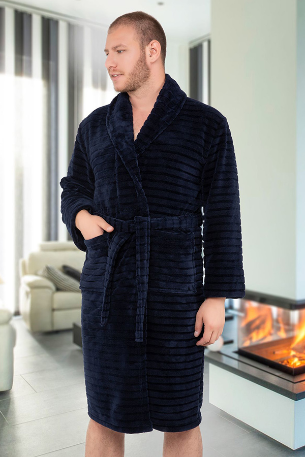 Халат чоловічий довгий рукав на запах з кишенями софт купити в Україні