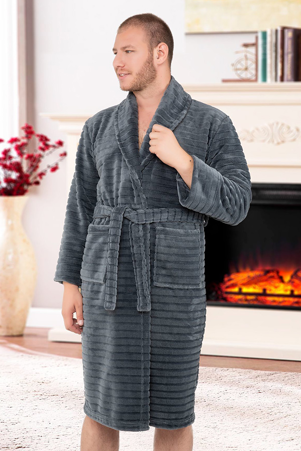 Халат чоловічий довгий рукав на запах з кишенями софт купити в Україні