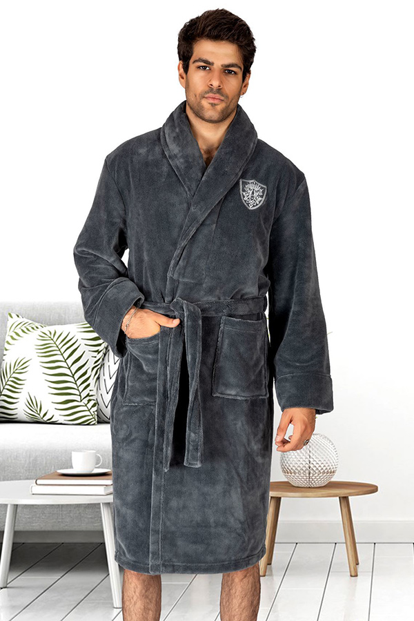 Халат чоловічий довгий рукав на запах з кишенями велсофт купити в Україні