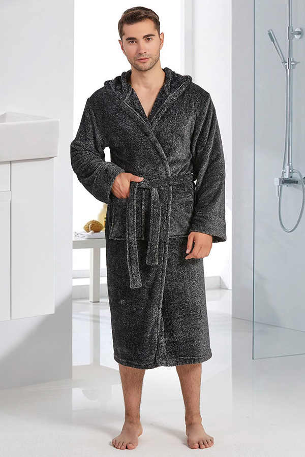 Халат чоловічий довгий рукав на запах з кишенями велсофт купити в Україні