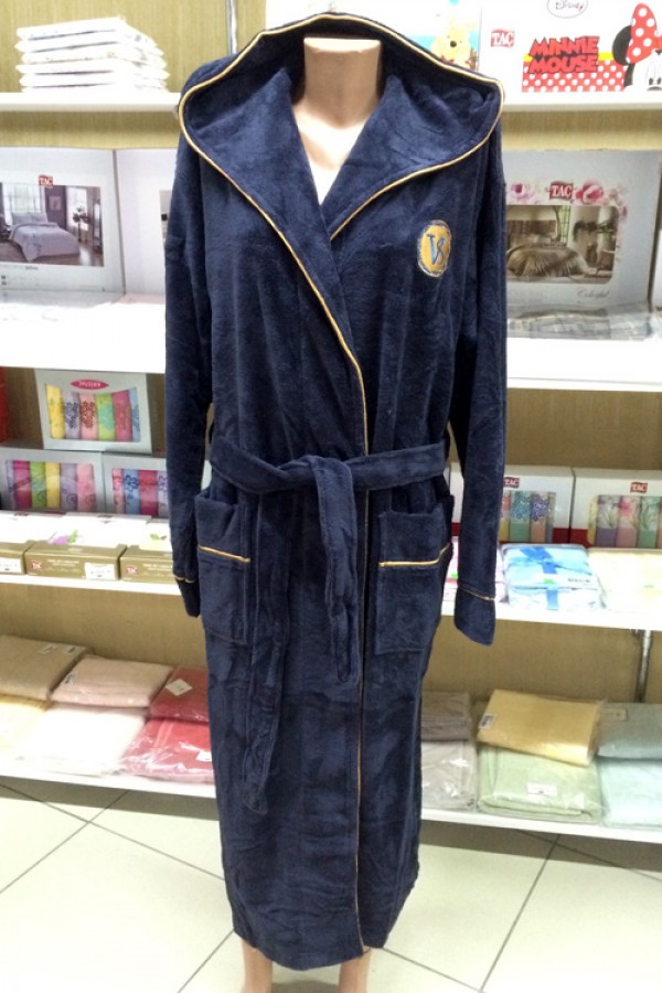 Халат чоловічий довгий з капюшоном на запах бамбук синій купити в Україні