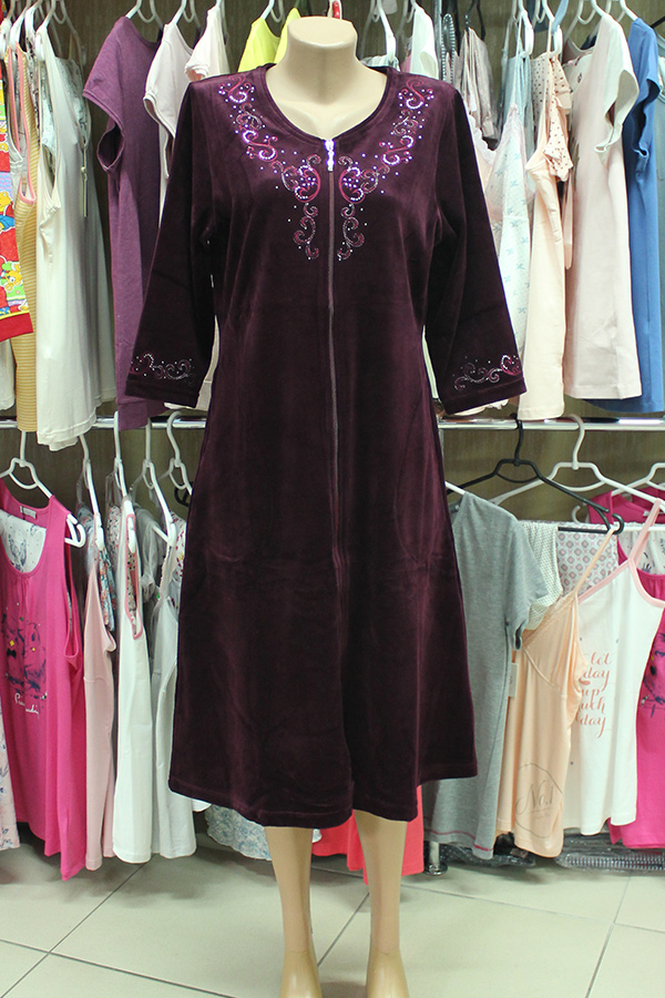 Халат велюровий жіночий 3/4 рукав на блискавці купити в Україні