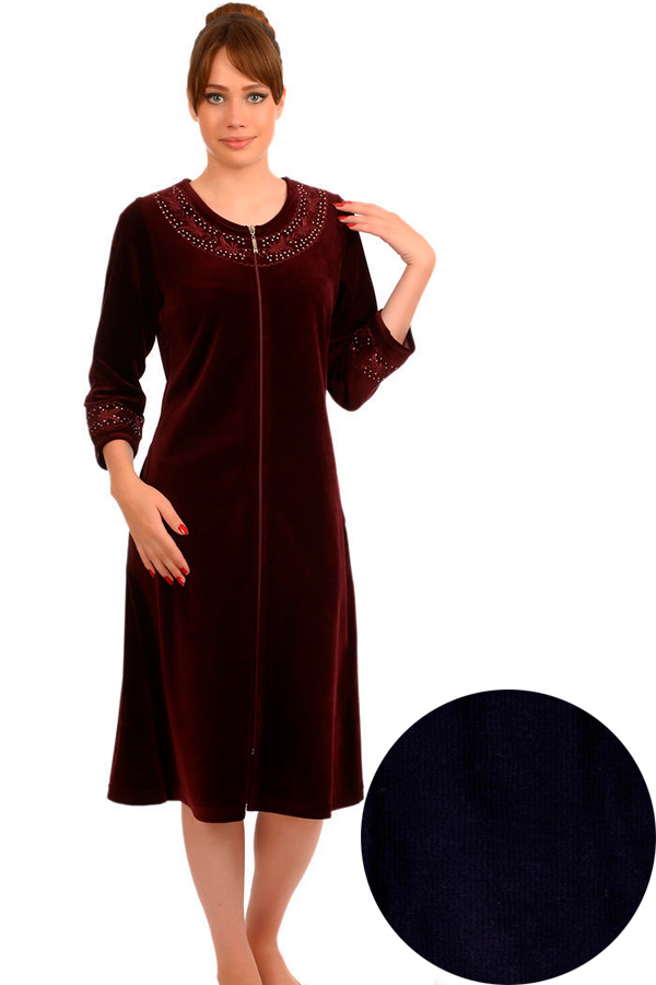 Халат жіночі велюровий 3/4 рукав на блискавці синій купити в Україні