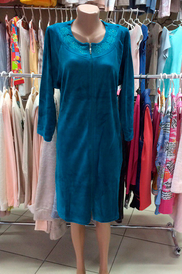 Халат жіночі велюровий 3/4 рукав на блискавці зелений купити в Україні