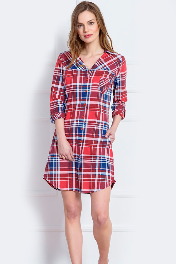 Халат жіночий 3/4 рукав на гудзиках у клітку з кишенею купити в Україні
