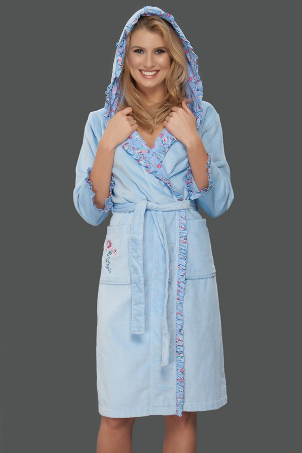 Халат жіночий 3/4 рукав на запах з капюшоном велюр махра купити в Україні