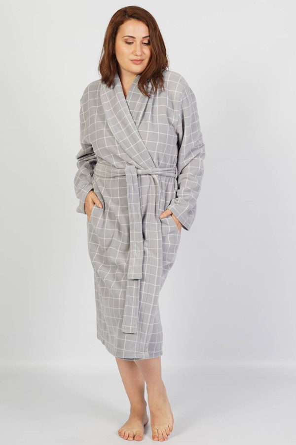 Хочете відчути комфорт і затишок у холодну пору року? Тоді Вам обов'язково варто придбати довгий жіночий халат на запах з флісу, а його стильний дизайн зробить вас справжньою королевою свого будинку. Довгі рукави та манжети забезпечують додатковий захист від холоду, а наявність кишень дозволяє зберігати потрібні дрібниці під рукою. Будьте чарівними в будь-яку пору року разом з Vienetta Secret!
