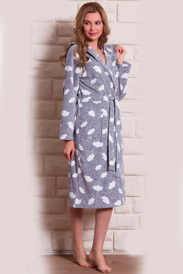 Халат жіночий довгий рукав на запах з капюшоном фліс купити в Україні