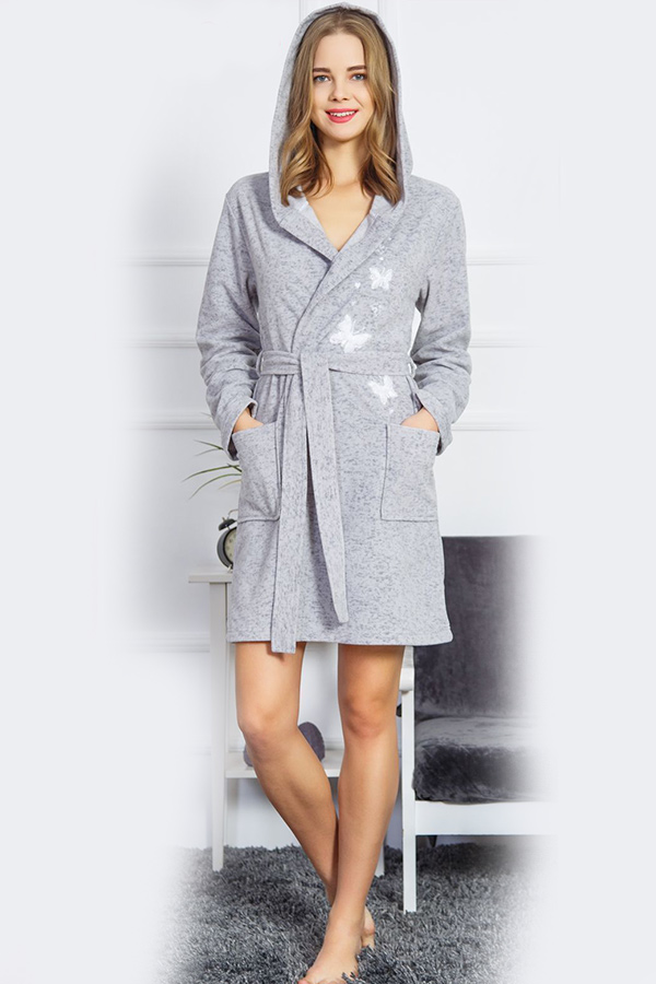 Халат жіночий довгий рукав на запах з капюшоном флісовий. купити в Україні