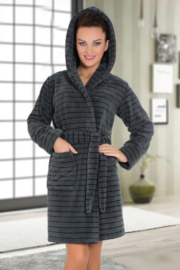 Халат жіночий довгий рукав на запах з капюшоном софт купити в Україні