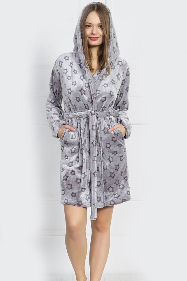 Халат жіночий довгий рукав на запах з капюшоном софт купити в Україні