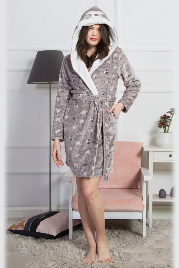 Халат жіночий довгий рукав на запах з капюшоном софт купити в Україні