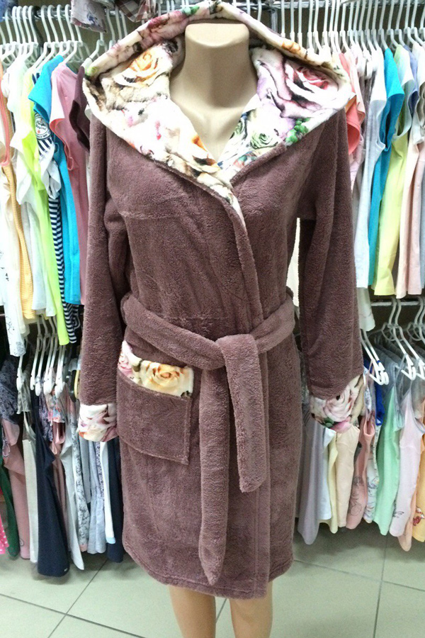Халат жіночий довгий рукав на запах з капюшоном софт купити в Україні