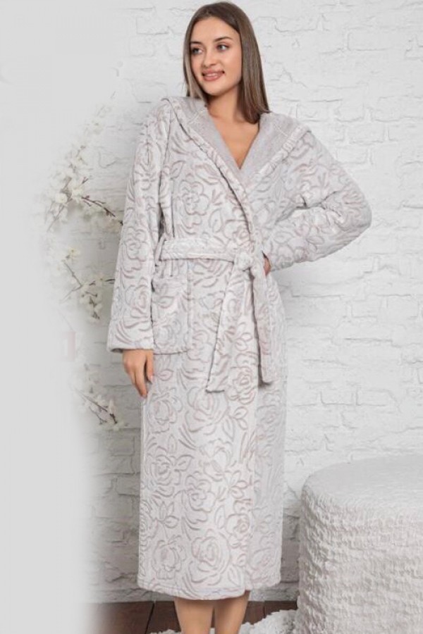 Халат жіночий довгий рукав на запах з капюшоном велсофт купити в Україні