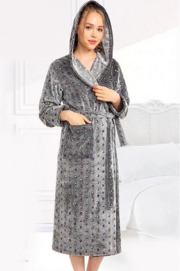 Халат жіночий довгий рукав на запах з капюшоном велсофт купити в Україні