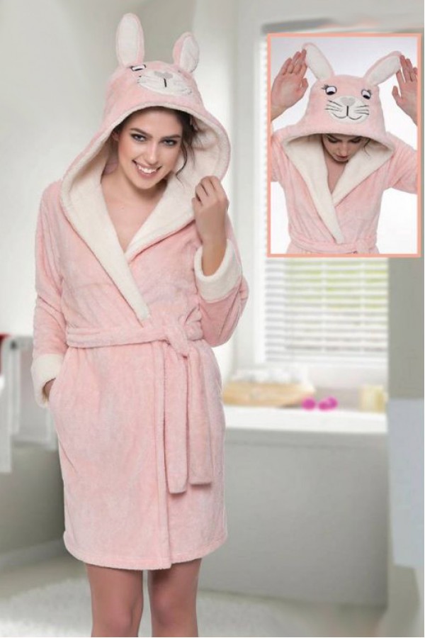 Халат жіночий довгий рукав на запах з капюшоном-вушками купити в Україні