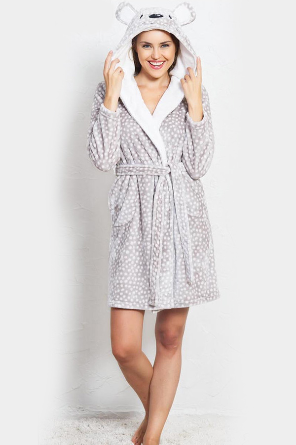 Халат жіночий довгий рукав на запах з капюшоном-вушками софт купити в Україні