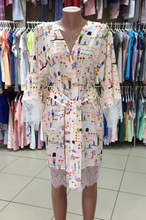 Халат жіночий довгий рукав на запах з мереживом купити в Україні