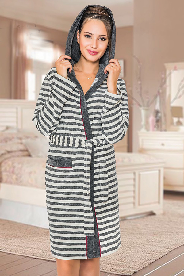 Халат жіночий довгий велюровий рукав на запах з капюшоном купити в Україні