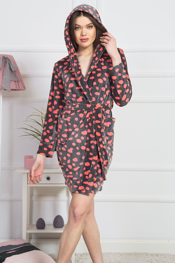 Халат жіночий довгий велюровий рукав на запах з капюшоном купити в Україні