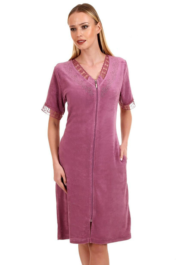 Халат жіночий короткий рукав на блискавці тонка махра купити в Україні