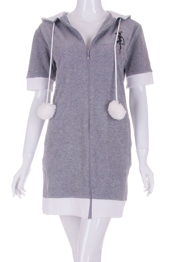 Халат жіночий короткий рукав на блискавці велюр жакард з капюшоном та вушками купити в Україні