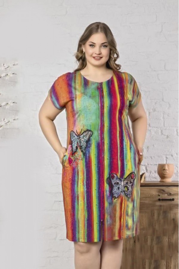 Халат жіночий короткий рукав на ґудзиках з кишенями купити в Україні