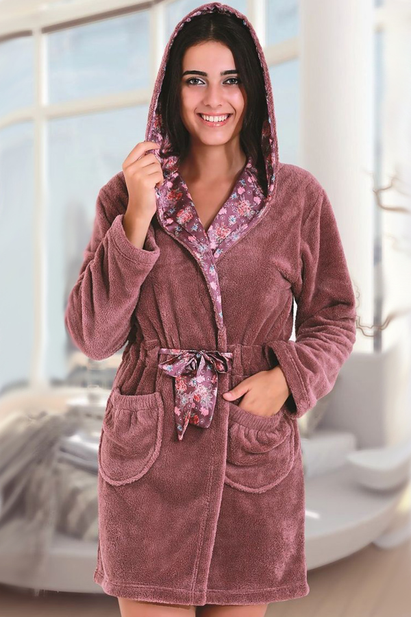 Халат жіночий махровий довгий рукав на запах з фрезовим капюшоном. купити в Україні