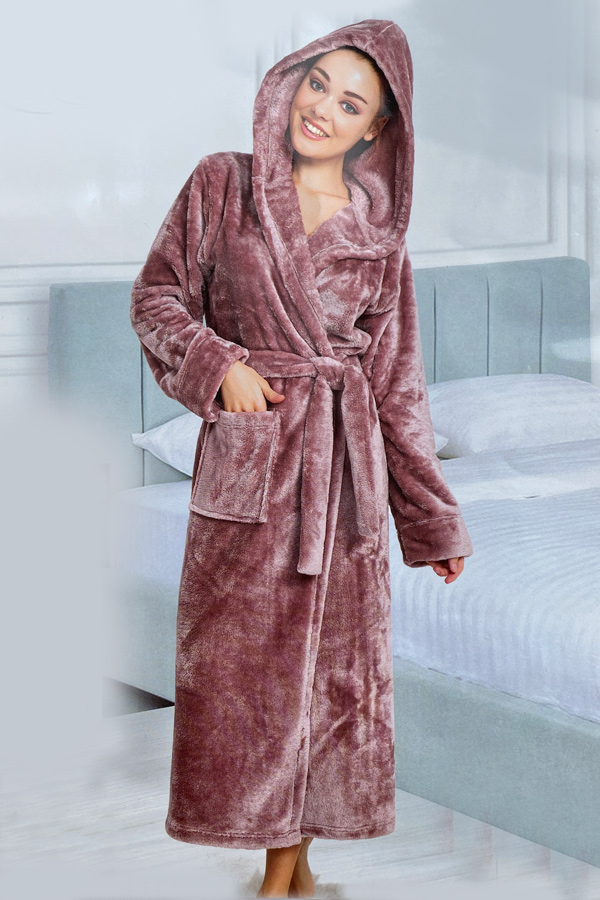 Халат жіночий махровий довгий рукав на запах з капюшоном купити в Україні