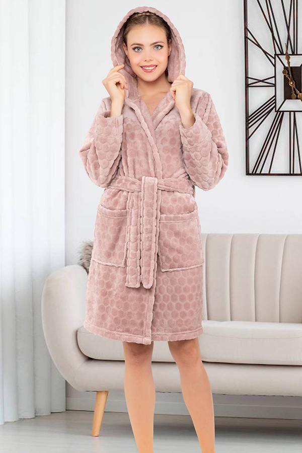 Халат жіночий махровий довгий рукав з капюшоном на запах купити в Україні