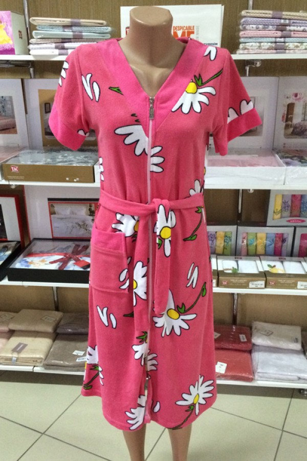 Халат жіночий махровий на блискавці короткий рукав купити в Україні