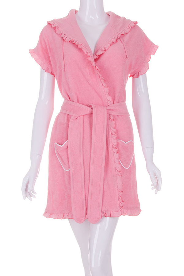 Халат жіночий махровий на запах з капюшоном короткий рукав купити в Україні