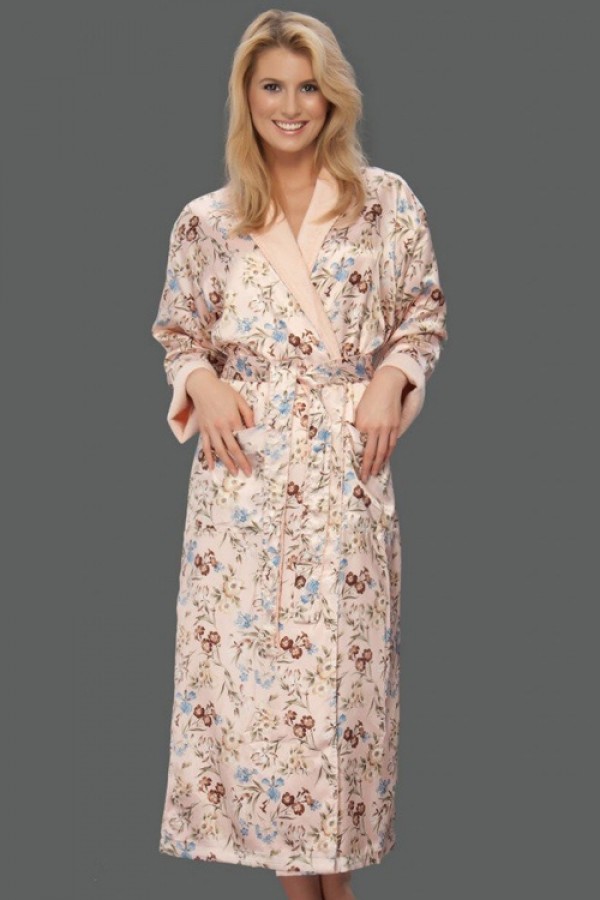 Халат жіночий шовк-махра довгий рукав на запах купити в Україні