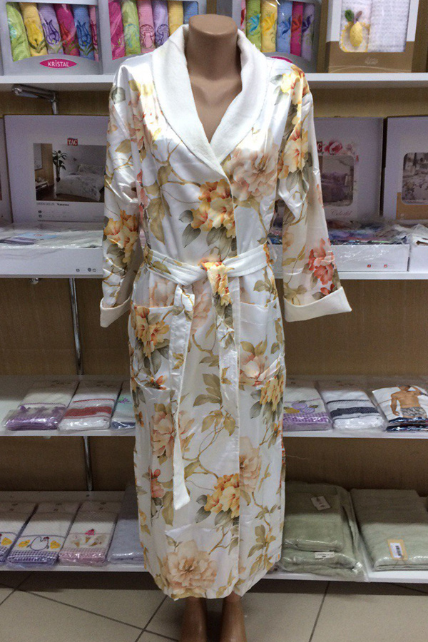 Халат жіночий шовк-махра довгий рукав на запах купити в Україні