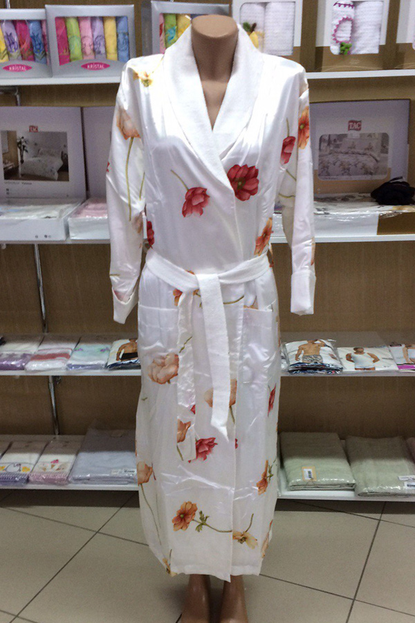 Халат жіночий шовк-махра довгий рукав на запах купити в Україні