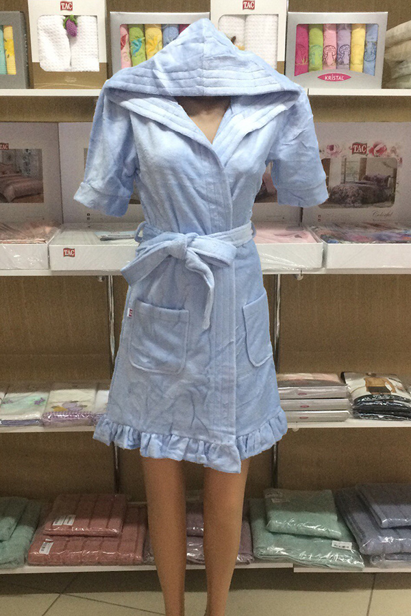 Халат жіночий велюр махра на запах короткий рукав з капюшоном купити в Україні