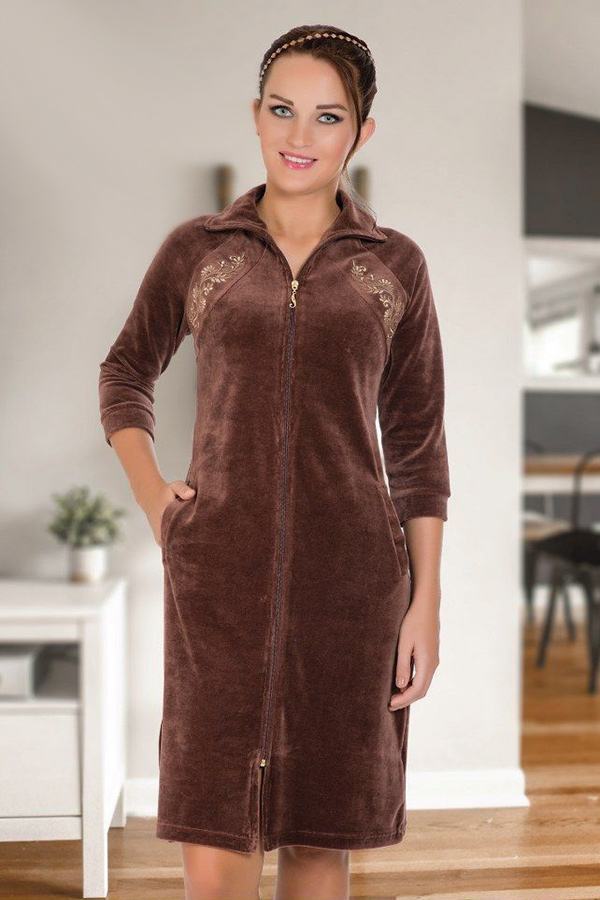 Халат жіночий велюровий 3/4 рукав на блискавці купити в Україні