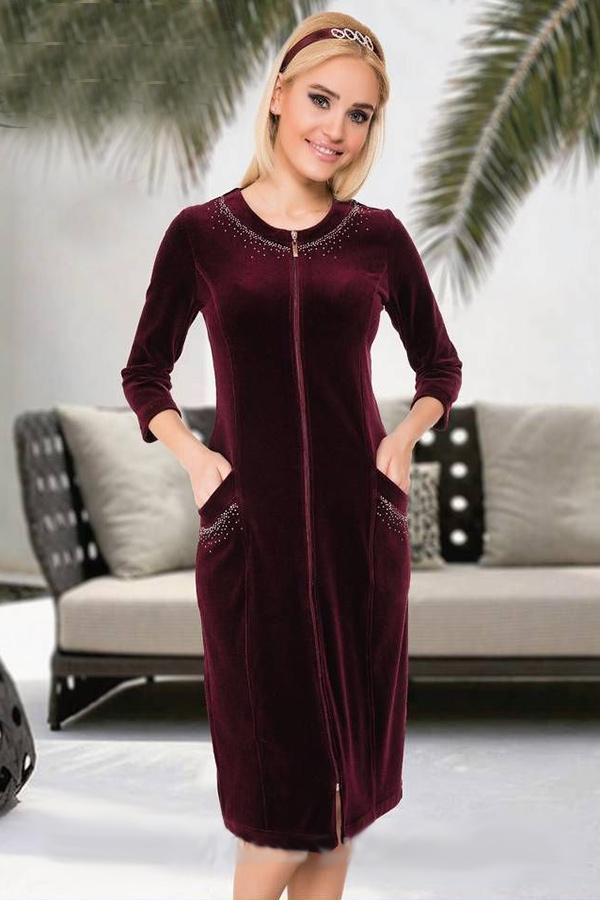 Халат жіночий велюровий 3/4 рукав на блискавці купити в Україні