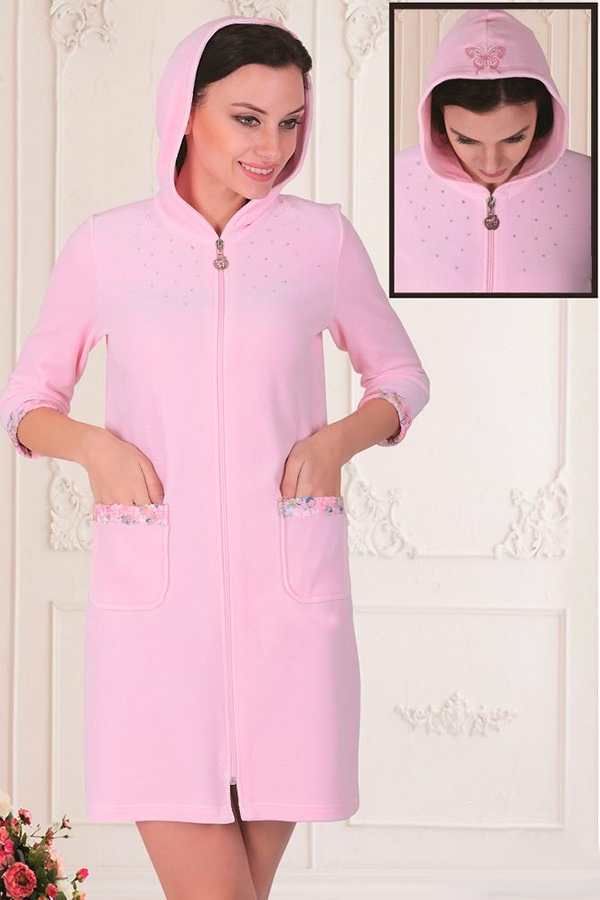 Халат жіночий велюровий 3/4 рукав на блискавці з капюшоном купити в Україні