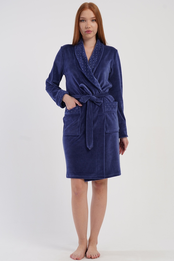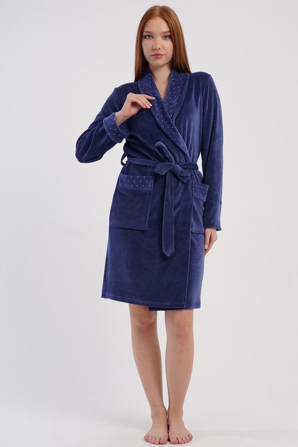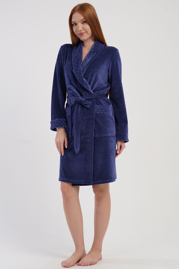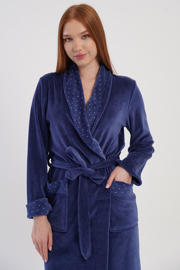 Халат жіночий велюровий довгий рукав на запах із поясом купити в Україні