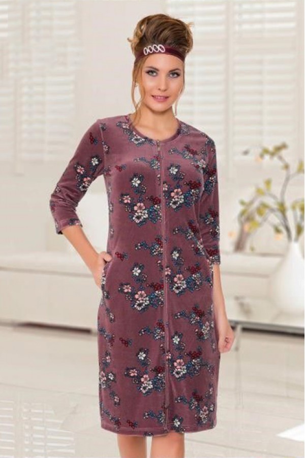 Халат жіночий велюровий на блискавці 3/4 рукав купити в Україні