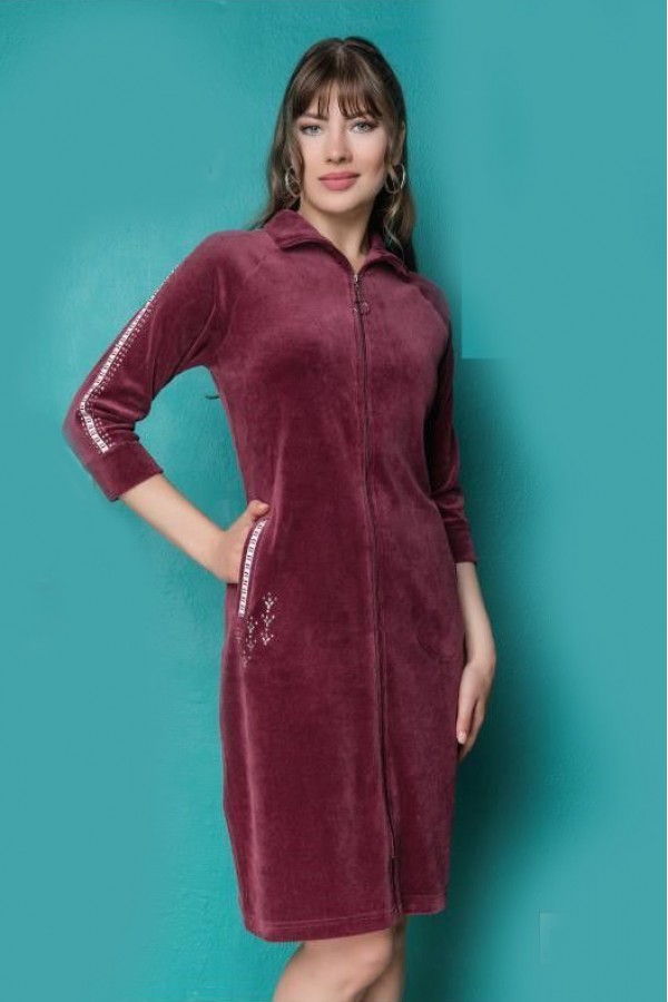 Халат жіночий велюровий на блискавці 3/4 рукав купити в Україні