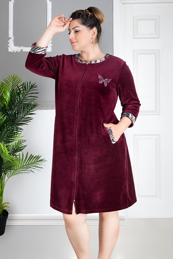 Халат жіночий велюровий на блискавці 3/4 рукав купити в Україні