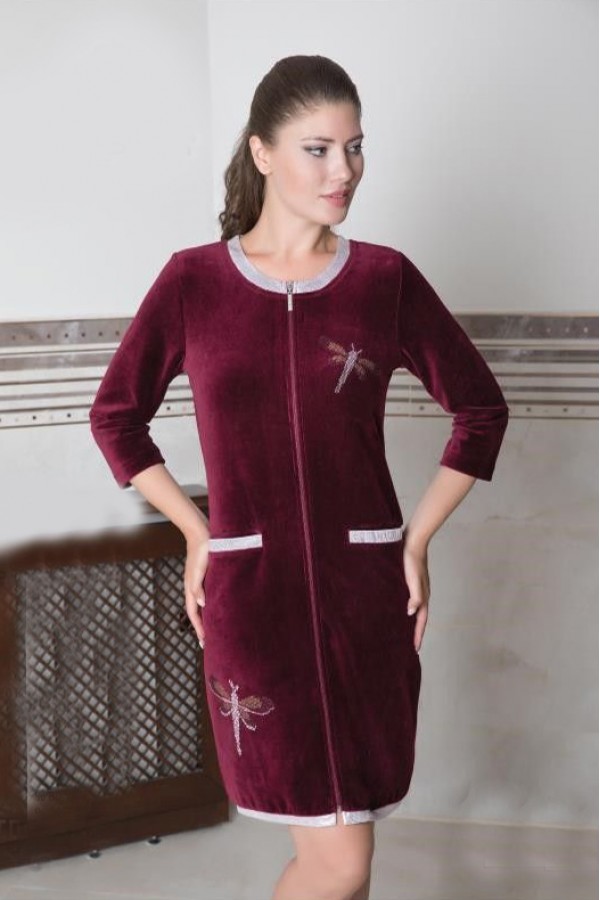 Халат жіночий велюровий на блискавці 3/4 рукав купити в Україні