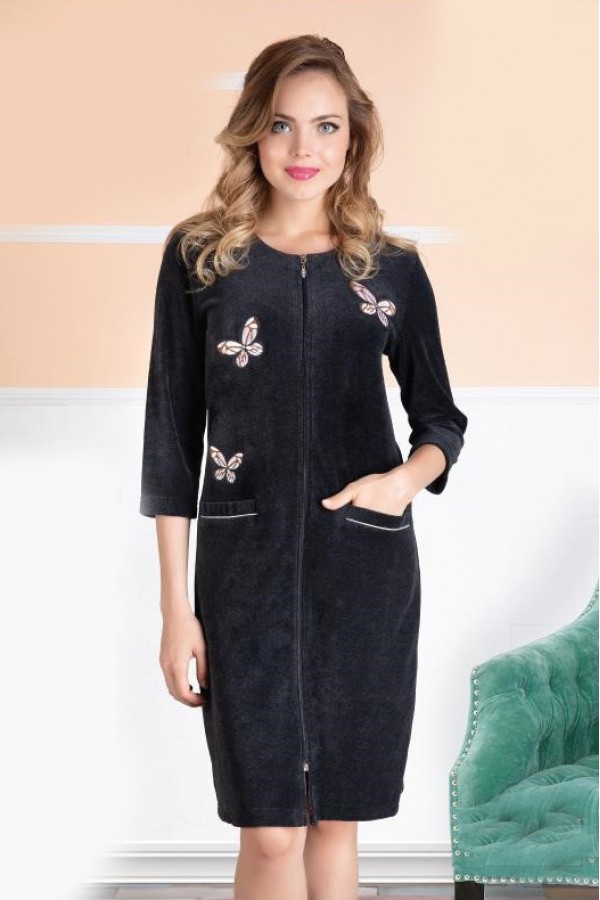 Халат жіночий велюровий на блискавці 3/4 рукав купити в Україні