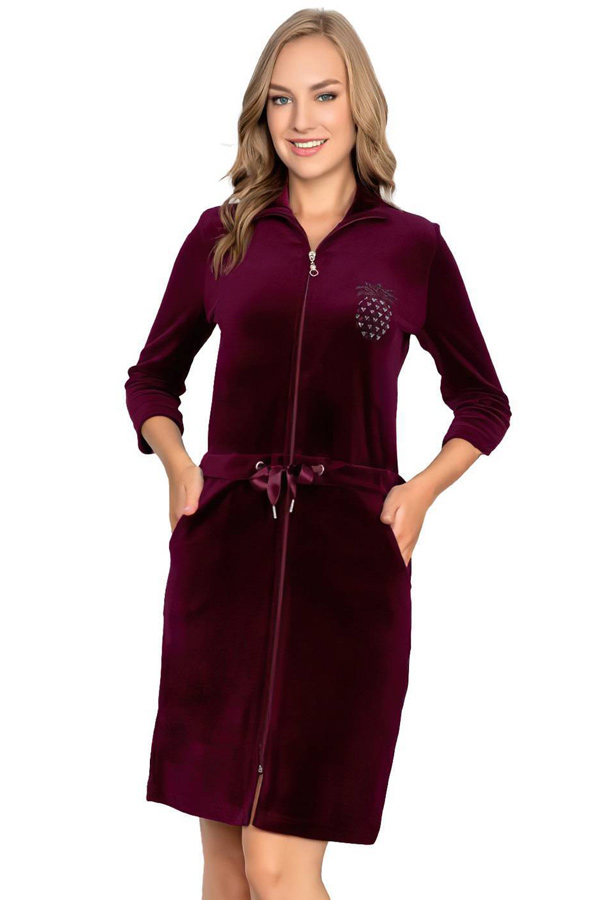 Халат жіночий велюровий на блискавці 3/4 рукав купити в Україні