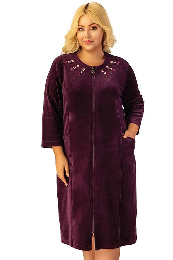 Халат жіночий велюровий на блискавці 3/4 рукав купити в Україні