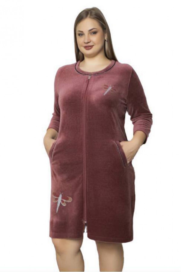 Халат жіночий велюровий на блискавці 3/4 рукав купити в Україні