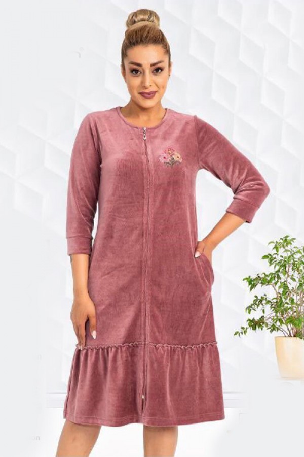 Халат жіночий велюровий на блискавці 3/4 рукав купити в Україні